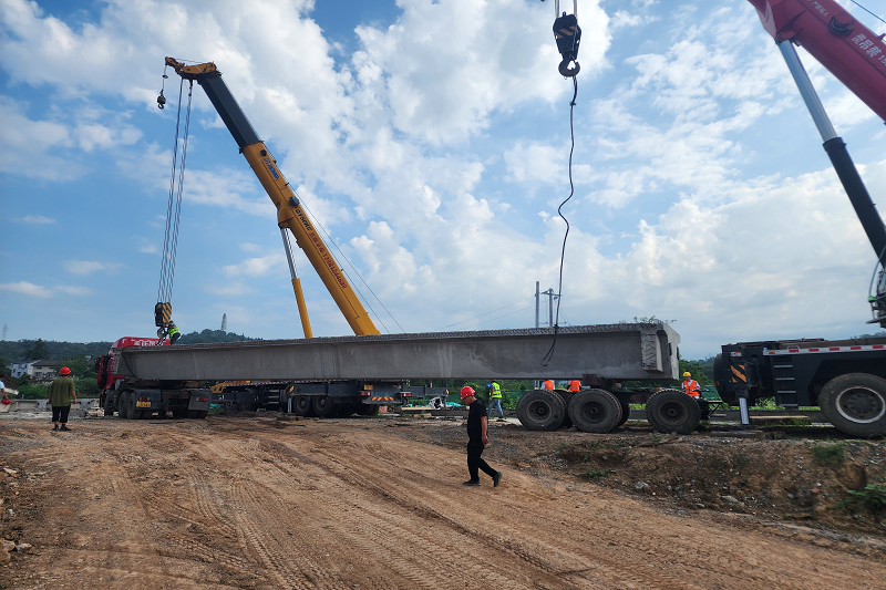 該項目是路橋集團承建的重點項目之一,始于南河污水處理廠,起點接國道108線,終點接省道205線,起止全長1.933km。周家窩中橋是該項目的重要節(jié)點工程,全長87.08米,該橋共計16片預制箱梁,預計8月15日完成所有箱梁架設。