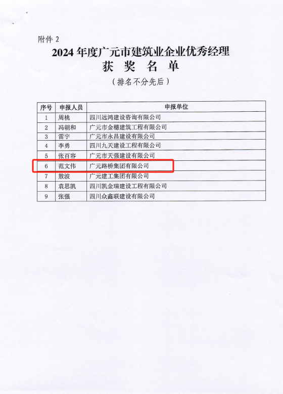 心懷星辰望遠,志存四海謀長。路橋集團將以此次表彰作為新的起跑線,把所獲榮譽轉化為源源不斷的奮進動力,秉持砥礪奮進的干事精神和勇攀高峰的篤定決心,在各項事業(yè)中不斷突破自我、持續(xù)創(chuàng)優(yōu)創(chuàng)新,為廣元建筑業(yè)高質量發(fā)展添注強勁勢能、奉獻路橋力量。