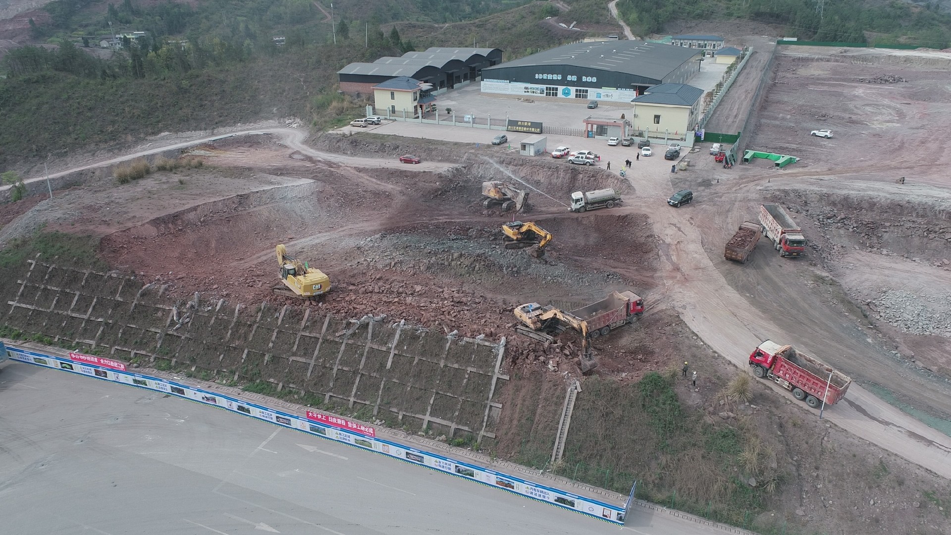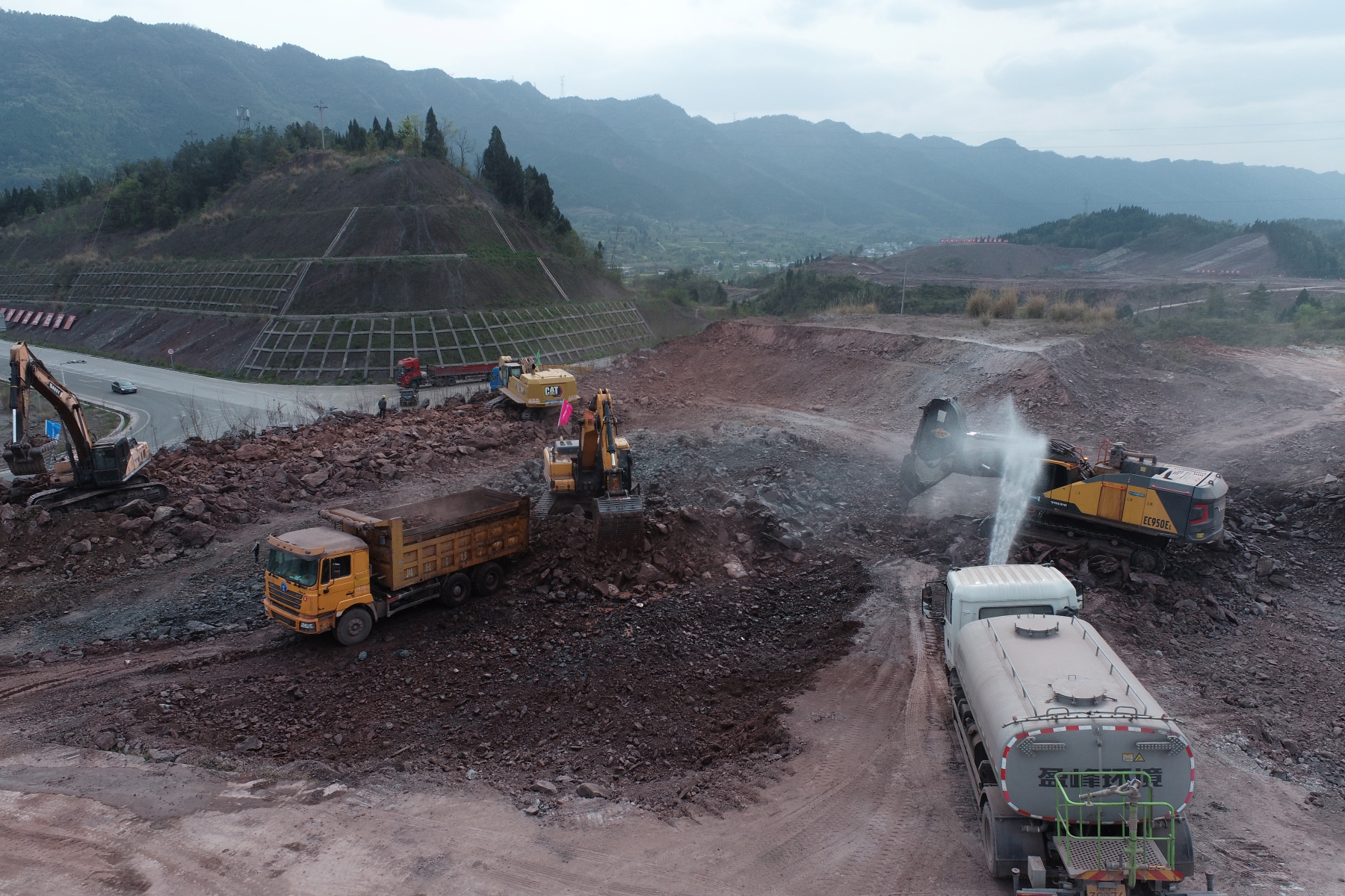4月4日,正值清明假期,G542線(xiàn)旺蒼嘉川化工園區(qū)段臨時(shí)道路工程施工現(xiàn)場(chǎng)仍一片繁忙。