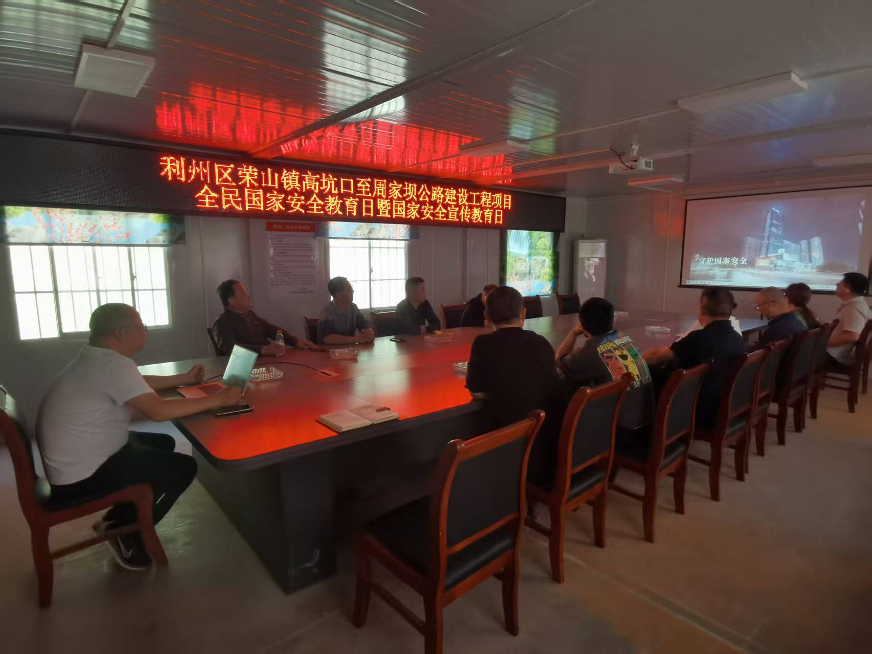 公司各部門干部職工、廣元市利州區(qū)榮山鎮(zhèn)高坑口至周家壩公路建設(shè)工程項(xiàng)目部人員觀看警示視頻,集中學(xué)習(xí)國(guó)家安全教育知識(shí)
